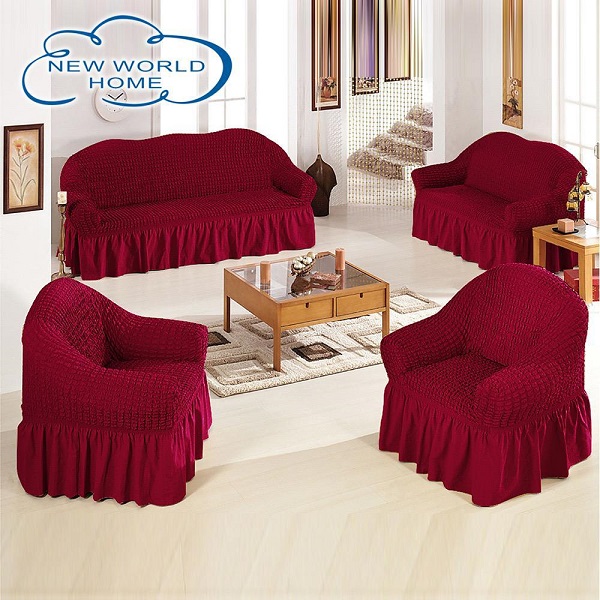 Σετ Ελαστικά Καλύμματα Καναπέ – Σαλονιού Mε Βολάν 3 Τεμαχίων Μπορντό