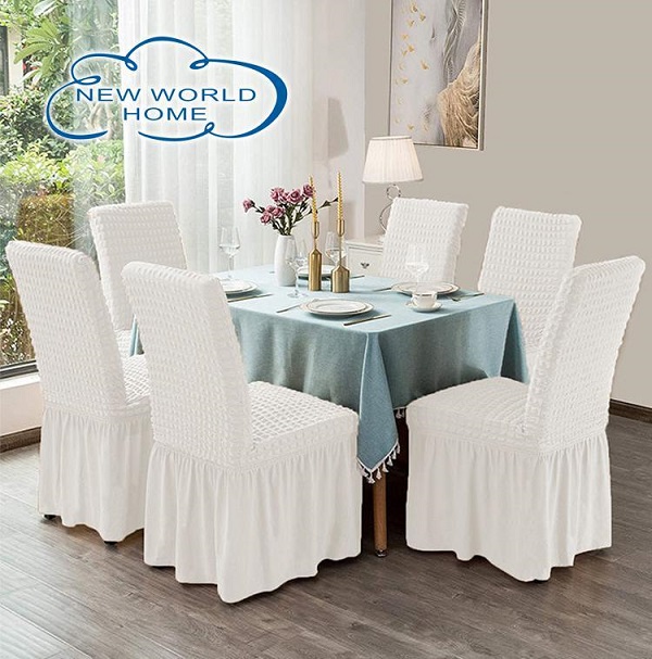 Σετ Ελαστικά Καλύμματα Καρέκλας Με Πλάτη Και Βολάν 6 Τεμάχια Λευκό