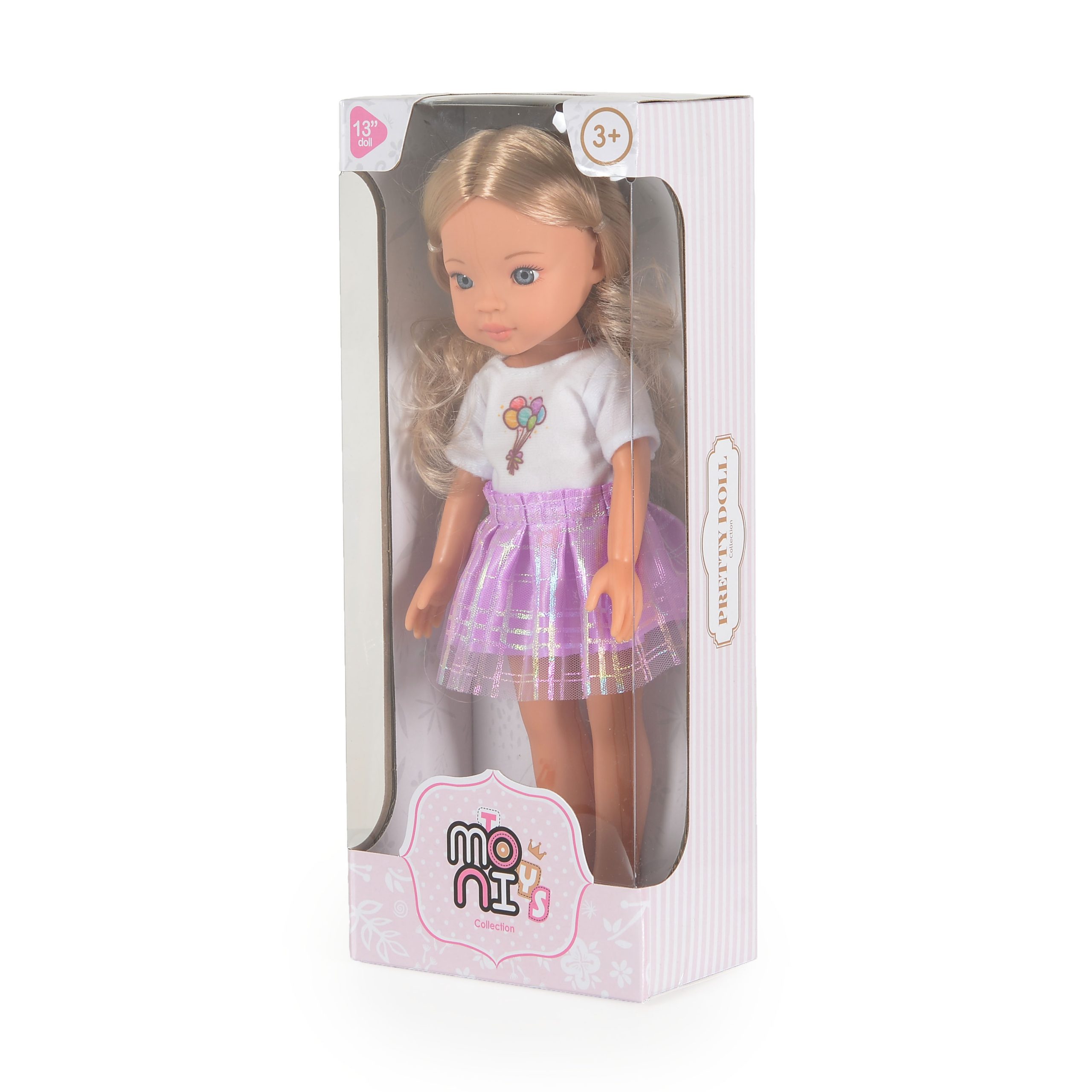 A 33 cm doll.The doll`s hair is made using rooted hair technology, which ensures stability and allows it to be combed and styled without the risk of damage, while also providing a natural look. The head, arms, and legs are made of high-quality vinyl, which is soft and pleasant to the touch, ensuring comfort during play. Suitable for children over 3 years old, the doll is made from safe and high-quality materials.