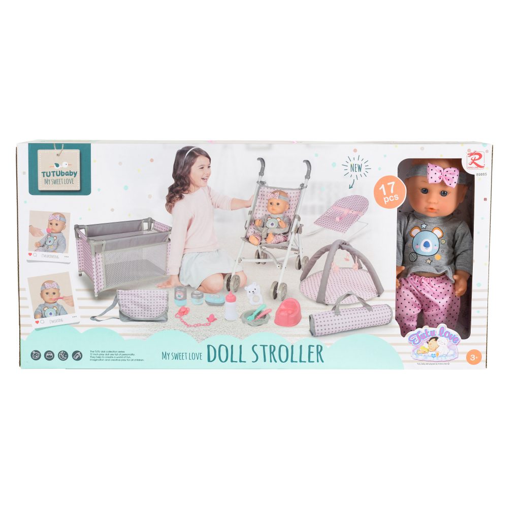 36 cm Doll with dining chair. The doll is musical. The doll can drink water from the bottle included in the kit and then pee. The included bottle is a toy and is not suitable for babies or children. The product is intended for children over 3 years of age.