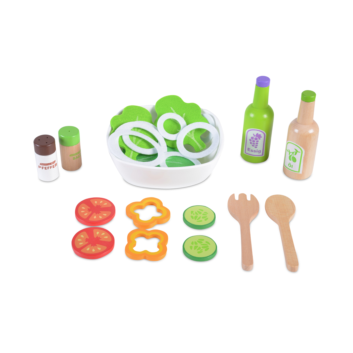 With this great set, your child will be able to run wild in the kitchen and prepare a delicious salad for dinner. The toys that are included in the set are made of materials that are safe for children.The interesting set contains: a large salad bowl, vegetables such as cucumbers, tomatoes, pepper, lettuce, onion, vinegar, oil, salt and pepper. While playing, the child will familiarize himself with the necessary products and very soon he will be able to help mom and dad in the kitchen.