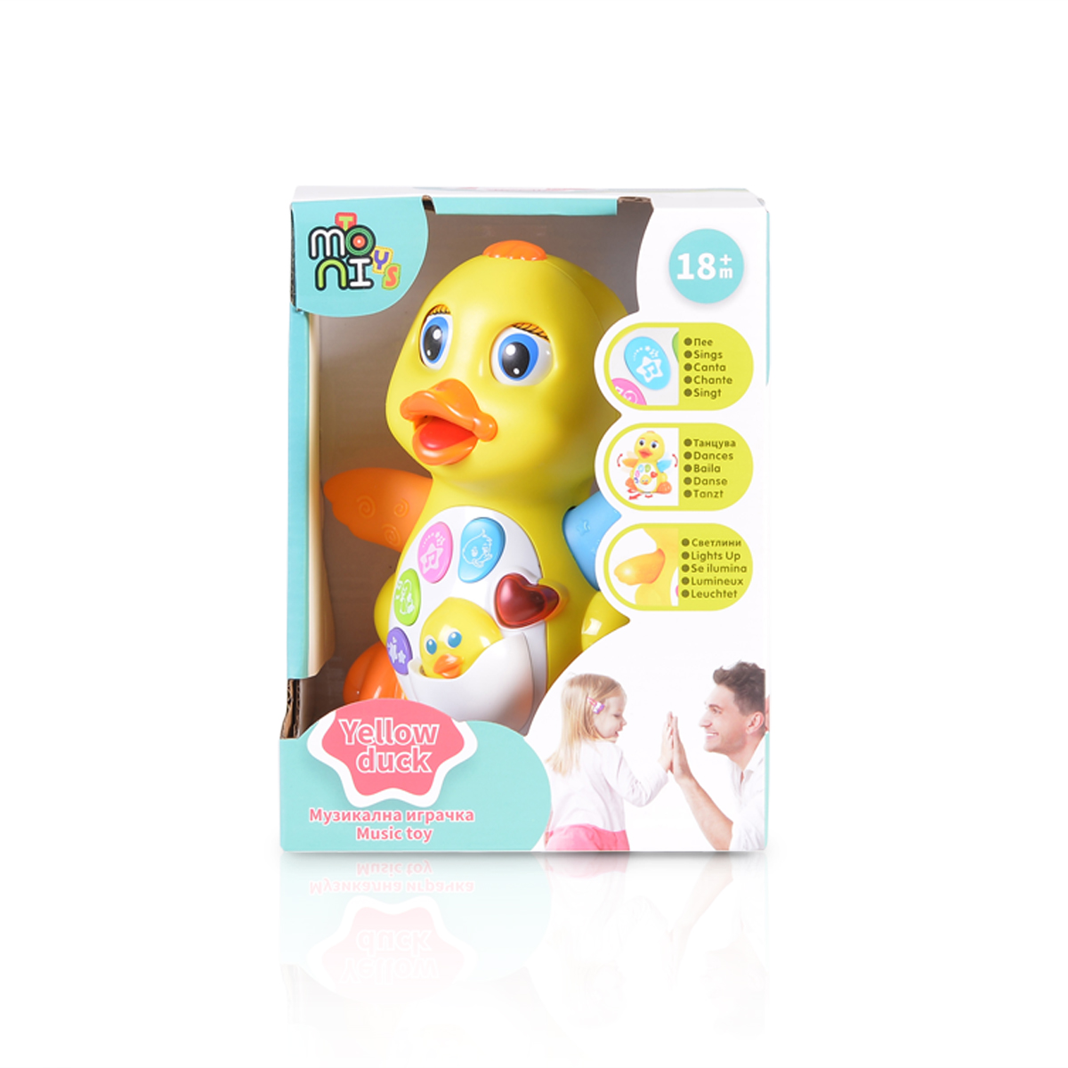 The product is intended for use by children above 18 months of age. Improves intelectual, hearing and seeing perceptions, recognising the different forms and colors and the hand skills Functions of the toy: pressing the different forms, you will hear different sounds and see lights, the toy will start rotating.