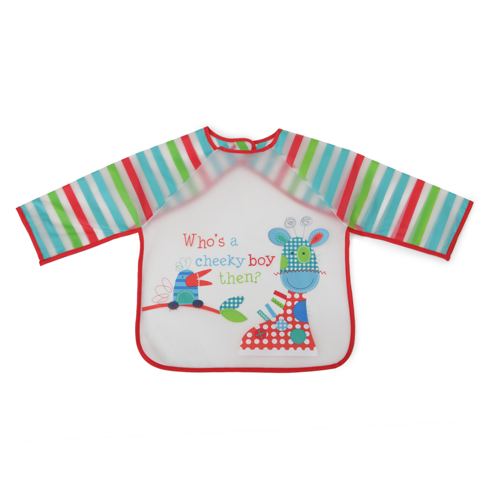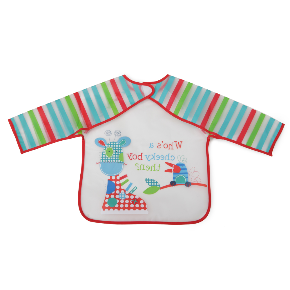 This product is waterproof. The colors and raw materials used are safe for the human health. Cleaning: Wash with warm, soapy water. Do not use strong or abrasive detergents. Do not launder. Warning: Keep away from fire and direct heat sources. Attention! Always remove the bib after feeding. Babies and small children should be supervised while feeding. This product is not a toy! When the product is not being used, store in a clean and dry place. Made of EVA material.