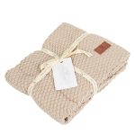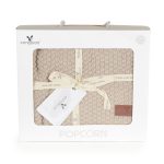 Knitted baby blanket, measuring 80×100 cm, made from natural materials – 50% bamboo and 50% cotton, providing softness and comfort. Bamboo fibers add hypoallergenic, antibacterial, and temperature-regulating properties, making the blanket perfect for delicate baby skin. Packaged in an elegant gift box. Easy to machine wash at 30°C.