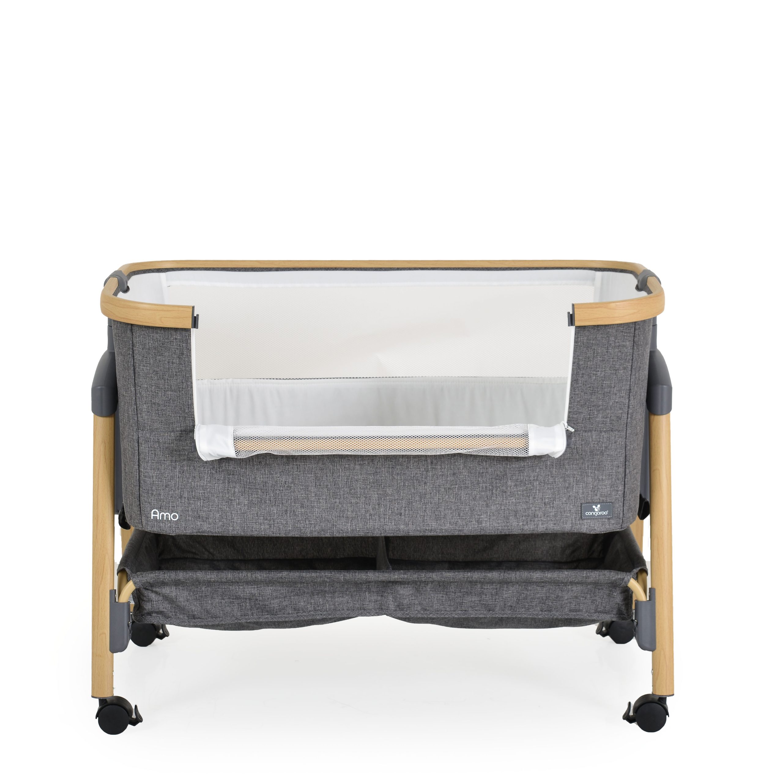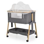 Suitable for babies from 0 months. “Fixing up to parent`s bed“ function makes the first months nights much easier for the parent to be always next the new born baby. Suitable for every kind of bed with minimum height of 50 cm from the floor and maximum 80 cm. Height could be adjusted to one of 7 positions and option the crib to be tilted to an angle of 30° to help your baby`s digestion, improves breathing and manage reflux. There are 4 wheels with stoppers for easy movement. The super comfort mattress and soft sides keep your baby in a right position and keeps it safe. It can be used as a normal crib. There is a mosquito net and a basket for accessories.