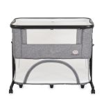 The 2-in-1 Baby Bed offers a practical and multifunctional solution for modern families, serving as both a co-sleeper for newborns (0+ months, up to 9 kg) and a playpen (6+ months, up to 15 kg and 90 cm height). Featuring a drop-side barrier for safe bedside attachment, 5 adjustable height levels, and breathable mesh sides for airflow and visibility, it ensures maximum comfort and security. Equipped with 4 lockable wheels, a soft mattress with washable cover, and a detachable canopy with mosquito net, it combines mobility, hygiene, and protection. A harness is included for secure fixation to the parent bed. This product meets European safety standards: EN 1130:2019, EN 12227:2010, and EN 16890:2017+A1:2021, making it a smart and reliable choice from day one.
