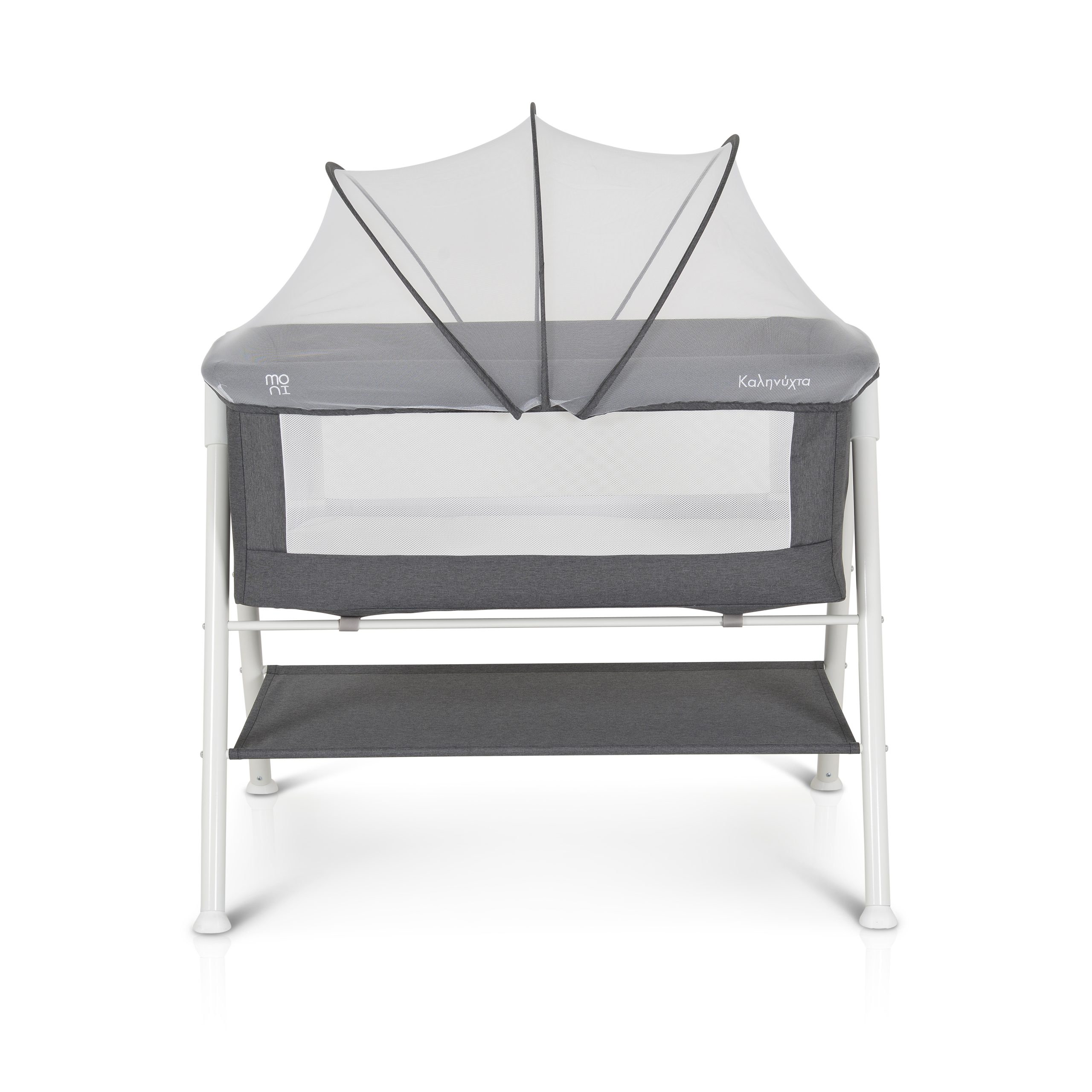 The baby crib Kalinihta is perfect solution for new-borns` sleep. The two mesh sides are breathable and see-through. The storage basket is very comfortable for use. The material of cotton and polyester is suitable for babies. The product is supplied with mosquito net.