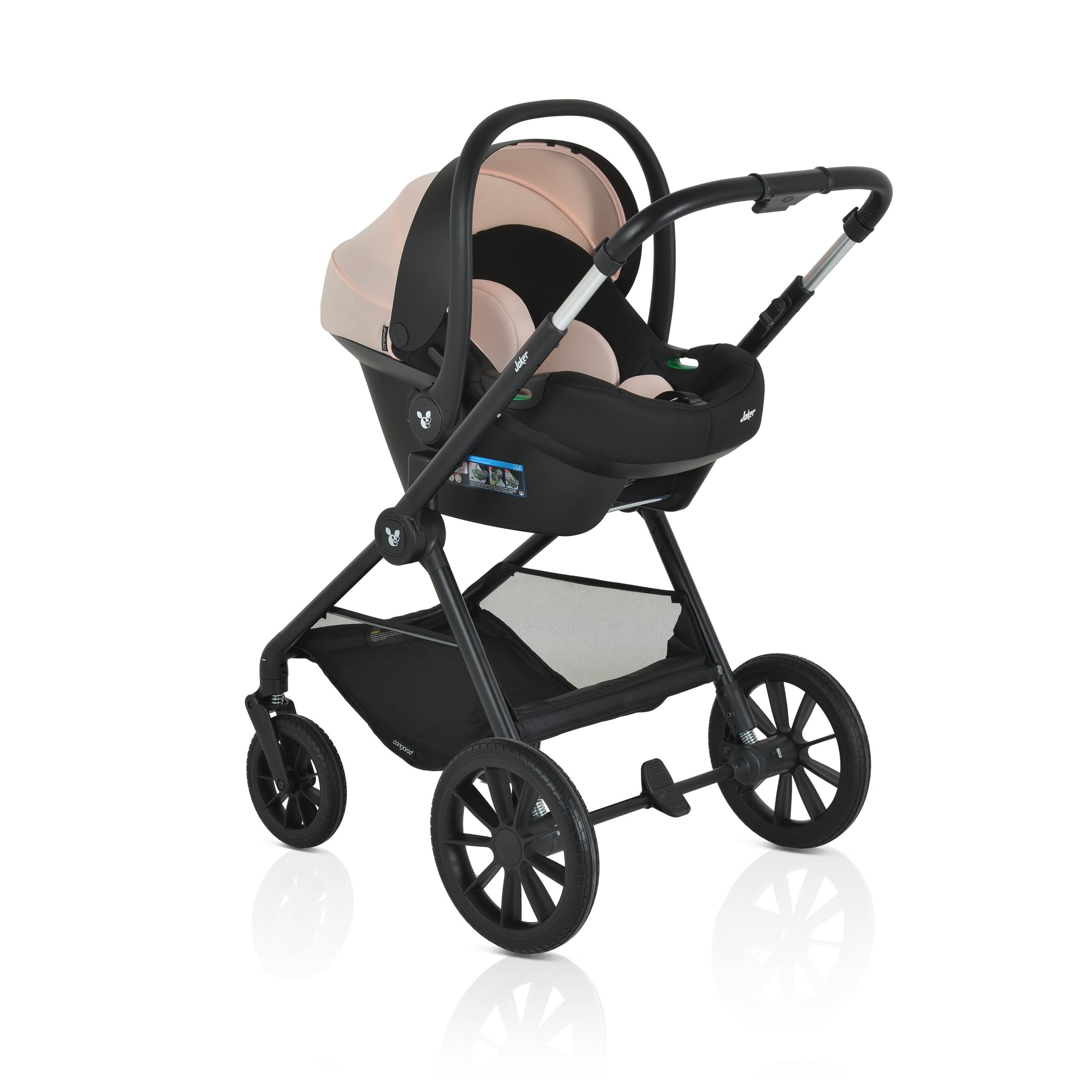 Ensure convenience, comfort and 100% safety for your baby with the 3-in-1 stroller Joker by the brand Cangaroo. It is suitable for children from birth up to 4 years of age with a weight of up to 22 kg. The model is equipped with a frame, ultra-light seat unit, foldable carrycot for newborns, and an R129 car seat 40-87 cm with adapters, accessory bag – transformable into a changing mat. Features: Semi-automatic one-hand folding – can be folded together with the seat unit, regardless of its mounted direction; Carry handle; Telescopic handle with 4 positions made of vegan leather; Memory buttons for attaching and detaching the carrycot and seat from the frame; PU wheels 8“ and 11.5“ with shock absorbers, easy removal with button; front wheels with 360-degree rotation and lock function with button; Seat unit with 3 reclining positions adjustable with a lever, including a flat position; 5-point safety harness with soft shoulder pads and 3 height positions; Ultra-large canopy with 4 sections and visor with UPF50+ sun protection and water resistance; Adjustable footrest in 4 positions with leather anti-dirt section; Removable bumper bar made of vegan leather, with swing-away function; Ultra-light foldable carrycot for newborns with feet, additional mattress and removable upholstery. Large mesh windows. Extendable large canopy. Car seat – 40-87 cm – approved under R129/03 standard; additional memory foam cushion; 6 headrest height positions to follow the child`s growth; premium quality; 3 handle positions; Includes: frame, carrycot for newborn, seat unit, adapters for car seat, car seat, accessory bag, foot cover with additional double-sided liner.