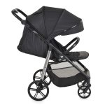 Suitable from birth up to 4 years of age with a maximum weight of 22 kg, this stroller impresses with its lightweight aluminum frame and elegant chrome accents. The one-hand quick-fold mechanism is easy and intuitive, while the wide and comfortable seat (87×32 cm) provides perfect support for rest and sleep. The backrest is adjustable in three positions, including a fully flat recline, and the ultra-large canopy is made of water-repellent fabric with UPF 50+ UV protection. A mesh window with magnetic closure ensures excellent ventilation and allows for easy monitoring of the child. An ergonomic handlebar with an adjustable angle offers maximum comfort for parents. The adjustable footrest with leather cover ensures easy maintenance. A detachable bumper bar allows easy access to the seat. All-wheel suspension guarantees a smooth and comfortable ride, while the 360° swivel front wheels with a locking option provide maximum maneuverability and stability on uneven terrain. The spacious underseat basket with easy access and integrated reflective strips adds extra safety during every outing.