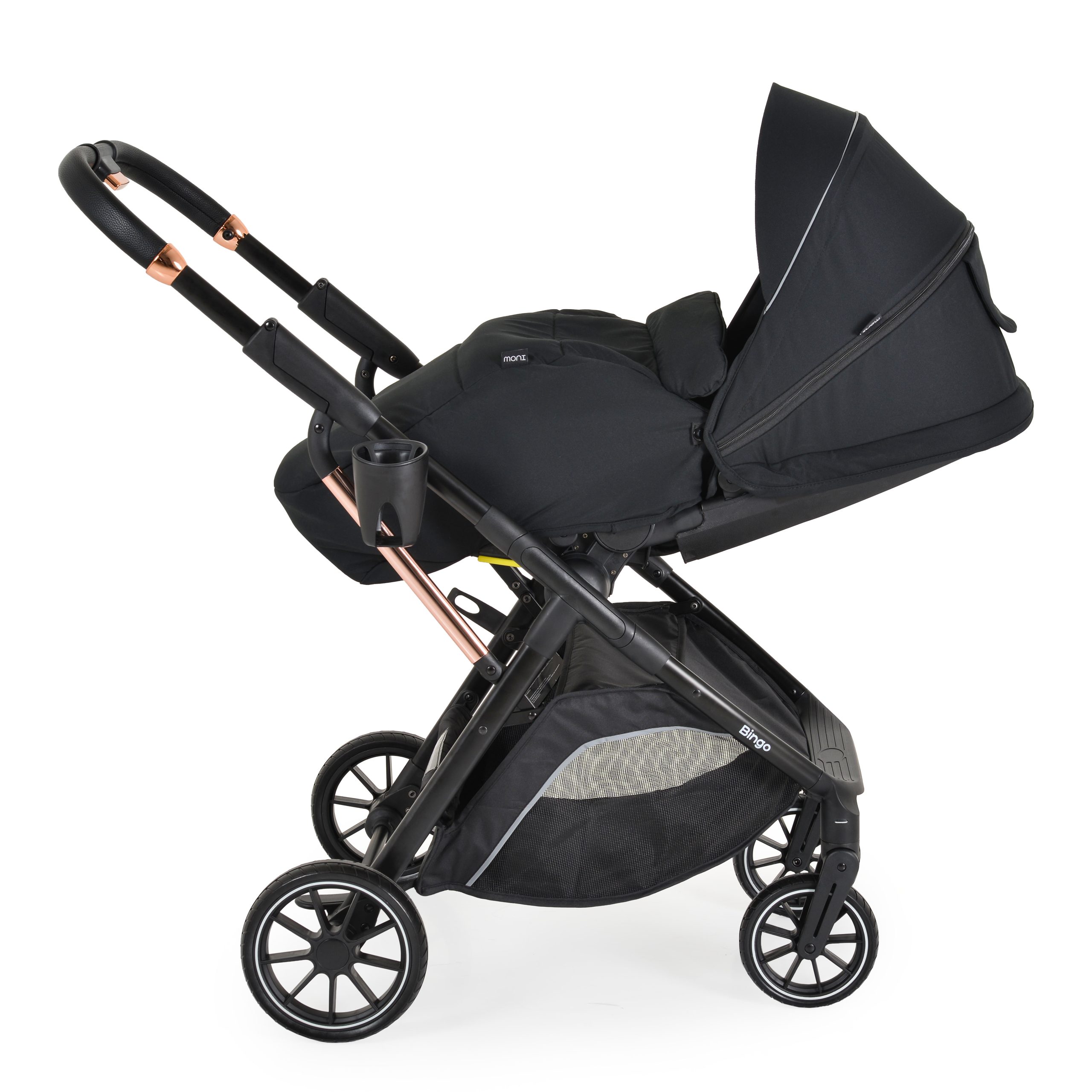The Bingo 2-in-1 stroller by the brand Moni is a convenient and practical solution, suitable for newborns and children up to 4 years old with a weight of up to 22 kg, and includes a stroller and a car seat for 40-87 cm. Reversible seat.Classic aluminum frame; Backrest adjustment – 3 positions; 5-point safety harness with soft shoulder pads and a premium magnetic buckle; 3 positions for the shoulder straps; Large canopy – 4 sections with a viewing window for the child, reflective strips, and a visor that easily folds away; Removable safety bar, foldable, with eco-leather cover; Adjustable footrest – 2 positions; Handle made of high-quality material – hand-stitched eco-leather; EVA wheels + added rubber 6“/8“ for extra durability; Front wheels rotate 360°; Rear wheels have a linked brake for greater convenience and safety; Easy one-hand folding in both directions together with the seat; Lightweight seat with ventilation openings; Large storage basket with reflective strips; Bottle/cup holder; Footmuff and accessory bag – included in the set; Manufactured in compliance with European standards EN1888-1 + A1:2022 and EN1888-2 + A1:2022; The Bingo car seat meets the latest R129/03 safety standard. Adapters and footcover included in the set. Lightweight construction, 5-point harness with soft shoulder pads, ergonomic handle – 4 positions, and a rocking base.
