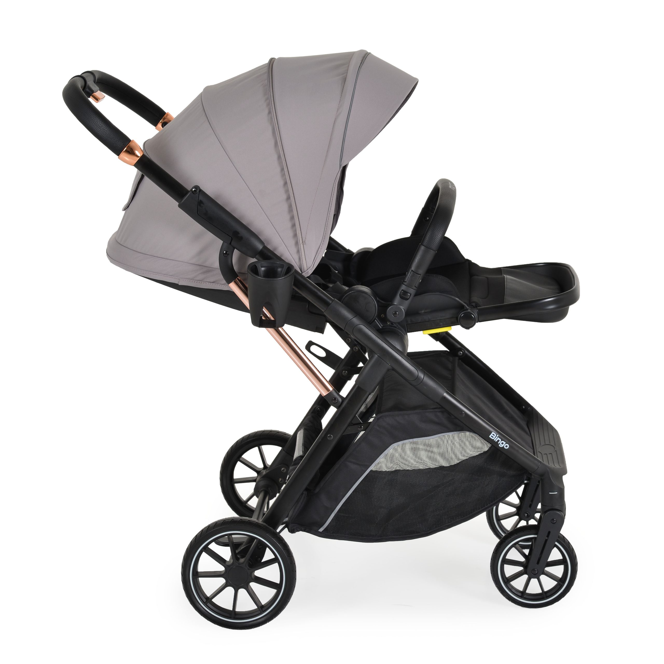 The Bingo stroller by Moni is a convenient and practical solution suitable for newborns and children up to 4 years old with a weight of up to 22 kg; Reversible seat. Classic aluminum frame; Backrest adjustment – 3 positions; 5-point safety harness with soft shoulder pads and a premium magnetic buckle; 3 positions for the shoulder straps; Large canopy – 4 sections with a child observation window, reflective strips, and a retractable visor; Removable, foldable bumper bar with eco-leather cover; Adjustable footrest – 2 positions; Handle made of high-quality material – hand-stitched eco-leather; EVA wheels + additional rubber 6“/8“ for extra durability; Front wheels rotate 360°; Rear wheels with a linked brake for greater convenience and safety; Easy one-hand folding in both directions along with the seat; Lightweight seat with ventilation openings; Large storage basket with reflective strips; Bottle/cup holder; Foot cover and accessory bag included in the set; Manufactured in accordance with the requirements of European standards EN1888-1 + A1:2022 and EN1888-2 + A1:2022.