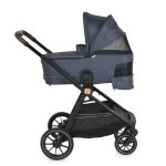 2 in 1 Celebrity Stroller, Cangaroo, suitable for children from birth up to 22 kg. Reversible seat with 3 reclining positions, easy folding with the seat, memory buttons for quick attachment/detachment of the bassinet and seat. Lightweight aluminum frame with powder coating. Telescopic handle with 4 positions, covered in PU leather. Adjustable footrest with eco-leather cover. UV50+ protected, waterproof canopy. Removable bumper bar made of PU leather. 5-point harness with soft pads and magnetic buckle. PU tires with shock absorbers, front wheels rotating 360° with locking option. Rear brake with central mechanism. Bassinet with adjustable mattress, ergonomic handle, and mesh window for ventilation. Diaper bag that transforms into a changing mat, additional changing mat, foot cover, and spacious basket with reflective strips for added visibility.Bassinet dimensions: 80 x 40 x 60 cm, folded stroller: 72 x 60 x 36 cm. Weight: Chassis: 8.30 kg, Seat: 3.80 kg, Bassinet: 4.50 kg.Compatible with the Onyx car seat and Rotex base (not included in the package). Manufactured according to European safety standards EN 1888-1:2018+A1 and EN 1888-2:2018+A1:2022.