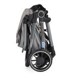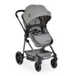 The stroller is suitable for children from 0 months up to 22 kg. It features a reversible seat with three recline positions, compact folding, a 3-section canopy with a visor, and a 5-point safety harness. The zippered protectors on the handle make maintenance easier and ensure better hygiene. The front wheels rotate 360 degrees. Detachable bumper bar with an additional zippered protector. Lightweight construction – weighs only 6.9 kg. The set includes a foot cover and adapters for a car seat.