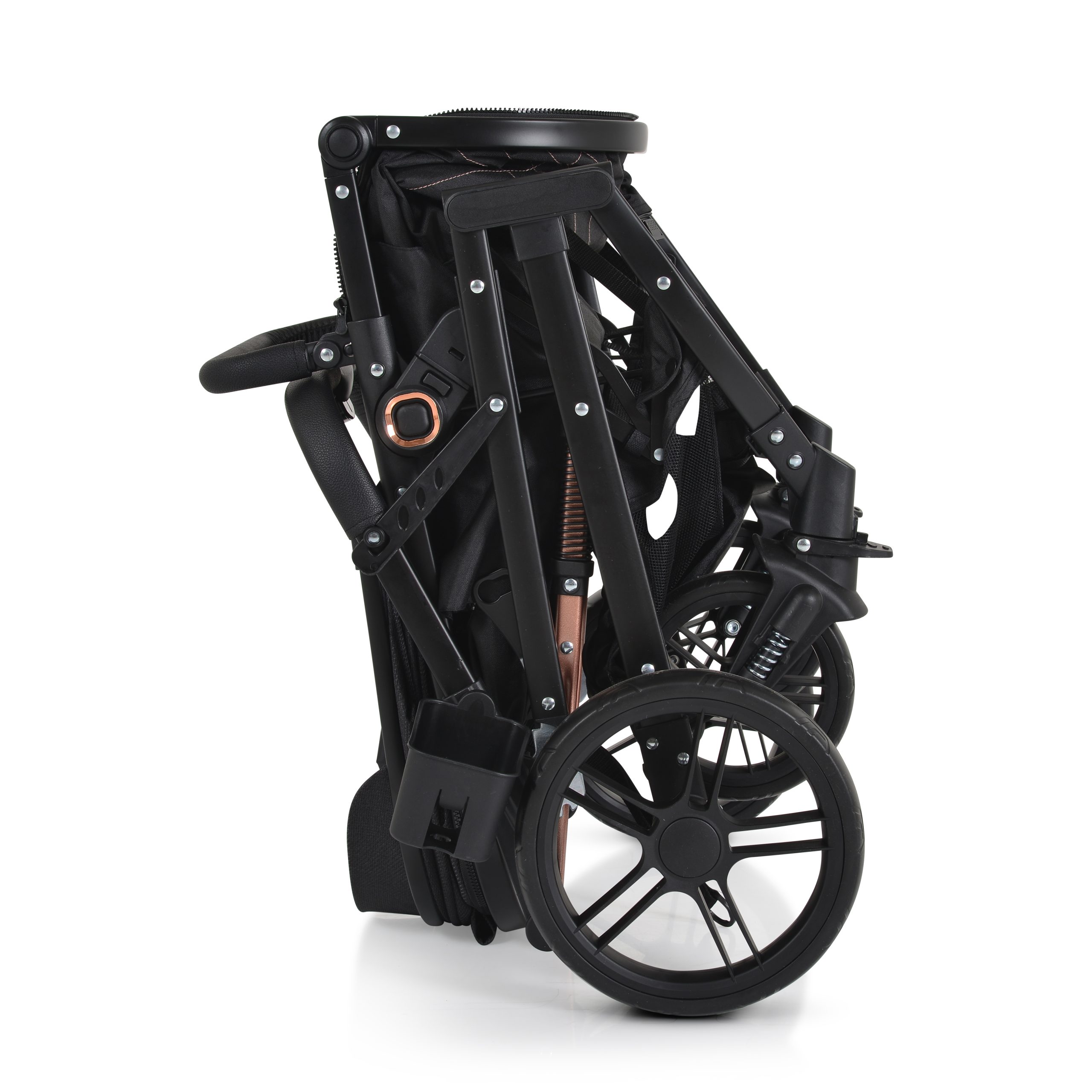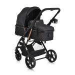 The Rafaello stroller is a modern, multifunctional solution suitable for children from birth up to 36 months (up to 15 kg). It easily converts from a bassinet into a seat and folds in a book-style fold with the seat attached. The lightweight aluminum frame and full suspension system on all wheels ensure a comfortable ride. The reversible seat offers flexibility by allowing forward or rear-facing positioning. Features include a fully reclining backrest, adjustable footrest, ergonomic handle with eco-leather finish, and a large expandable canopy with ventilation mesh. The under-seat basket holds up to 2 kg. The front 8” wheels have spring suspension, and the rear 10” wheels can be removed at the push of a button. The linked rear brake provides reliable stopping power. Included accessories: newborn insert, foot cover, accessory bag, mosquito net, and car seat adapters. Net weight: 8.5 kg. Compatible with the Car Seat Multi 40–86 cm and the Baby Car Seat Base Royal 40–87 cm, both sold separately.