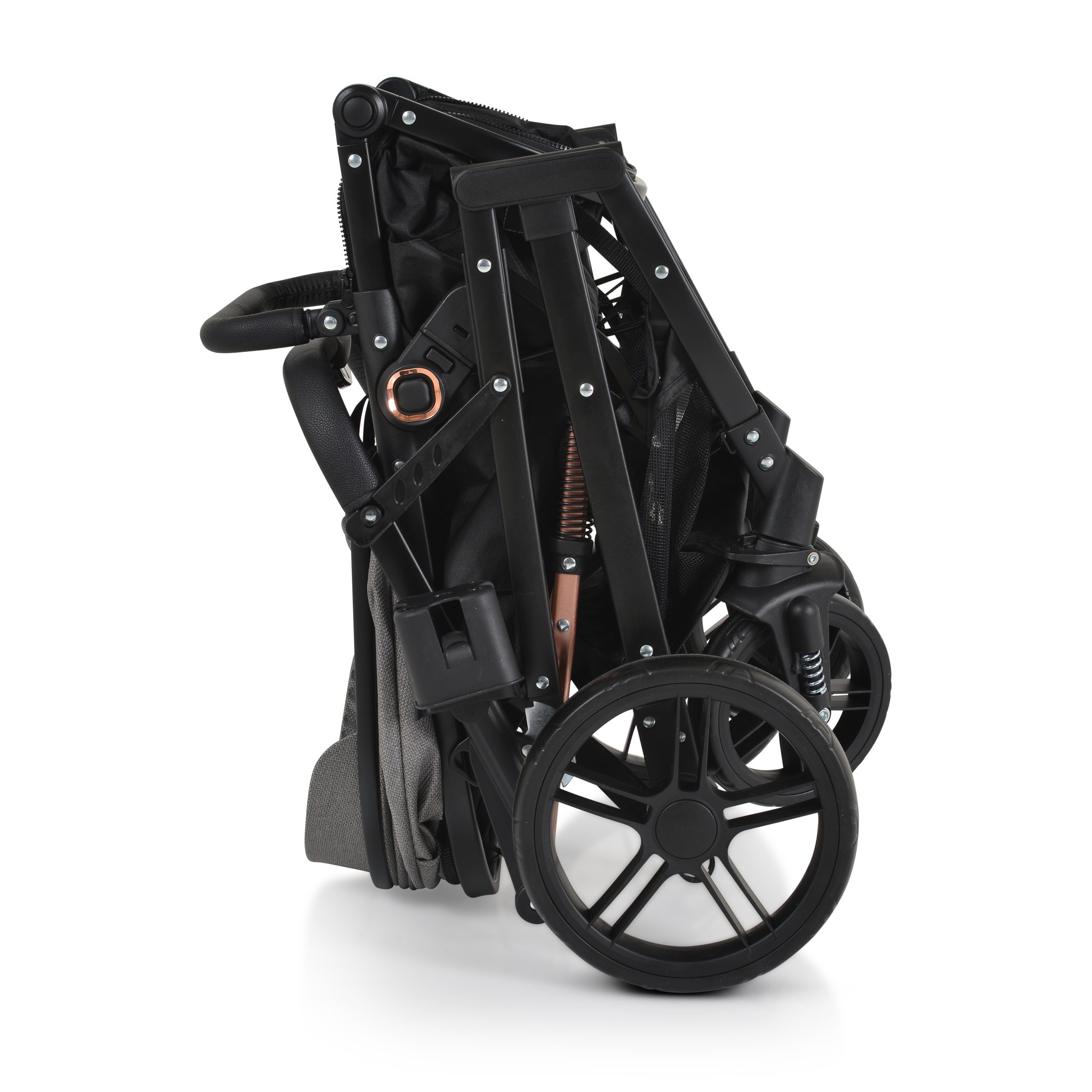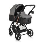 The Rafaello stroller is a modern, multifunctional solution suitable for children from birth up to 36 months (up to 15 kg). It easily converts from a bassinet into a seat and folds in a book-style fold with the seat attached. The lightweight aluminum frame and full suspension system on all wheels ensure a comfortable ride. The reversible seat offers flexibility by allowing forward or rear-facing positioning. Features include a fully reclining backrest, adjustable footrest, ergonomic handle with eco-leather finish, and a large expandable canopy with ventilation mesh. The under-seat basket holds up to 2 kg. The front 8” wheels have spring suspension, and the rear 10” wheels can be removed at the push of a button. The linked rear brake provides reliable stopping power. Included accessories: newborn insert, foot cover, accessory bag, mosquito net, and car seat adapters. Net weight: 8.5 kg. Compatible with the Car Seat Multi 40–86 cm and the Baby Car Seat Base Royal 40–87 cm, both sold separately.
