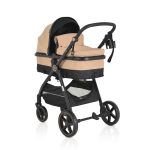 Baby Stroller Tokyo is suitable for newborns and children weighing up to 22 kg. It features an ultra-lightweight frame and a seat unit that easily transforms into a carrycot for newborn use. The seat can be installed in both directions – parent-facing or forward-facing – and has three reclining positions for maximum comfort. It includes a removable bumper bar made of high-quality eco leather and a 5-point safety harness with soft shoulder pads. The large adjustable canopy features a window for observing the child. The ergonomic handle is covered with premium eco leather for a comfortable grip. The spacious under-seat basket provides convenient storage. All wheels are equipped with shock absorbers and can be removed with a single motion. The rear wheels have a linked brake for added safety. The stroller can be folded together with the seat attached. Included accessories: foot cover, mama bag, and mosquito net. Car seat adapters are included. The stroller complies with European safety standards EN1888-1 and EN1888-2. Compatible with the Car Seat Multi 40-86 cm and the Baby Car Seat Base Royal 40-87 cm, both sold separately.