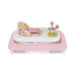 For children above 6 months of age. Tray with toys and music functions. All the toys can change their places. 4 levels of height adjustment depending on the child`s height. Soft seat. 2 front swivel wheels. 2 rear wheels. Silicone stoppers.