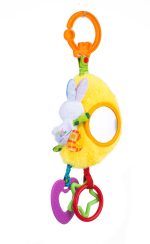 As the night begins in the land of Balibazoo, a soft moon appears in the plush sky and plays a sweet lullaby for the newlyweds to sleep. The pendant is made of materials with different textures that stimulate babies` sense of touch. The moon is decorated with a rustling cloud and a safe mirror to help baby discover themselves. The music box is activated by pulling the heart-shaped teether. The convenient handle allows you to attach the toy anywhere. The pendant is intended for children from the day of birth.