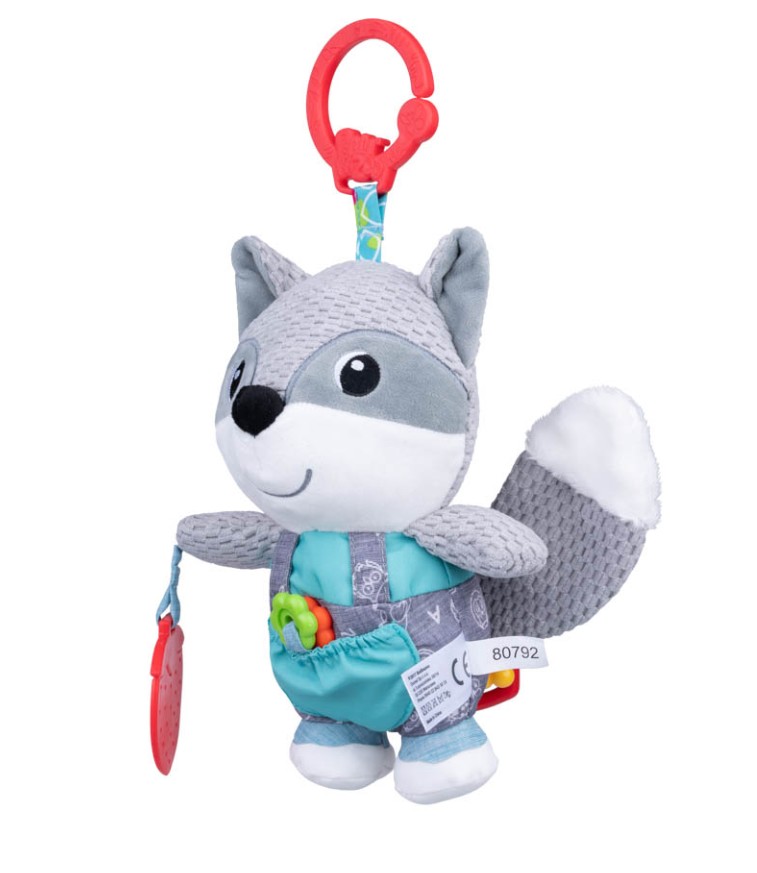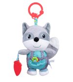 Thanks to the three-dimensional body, this toy will be great as a cuddly toy. The fox is made of materials with a varied texture, its ears and tail rustle, and it has a pocket on its belly where you can hide colorful teethers sewn to it.