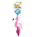 A heavenly atmosphere at your child`s fingertips! A colorful flamingo will cheer up the baby and provide him with entertainment. The bird`s wings are decorated with additional toys in the form of two colorful and soft teethers. The toy also comes with a jingle ring filled with colorful balls. The flamingo is made of materials with different textures that stimulate the toddler`s sense of touch, encouraging him to explore the world through sensory means. The practical pendant handle allows you to easily attach the toy anywhere. The product is intended for children from birth.