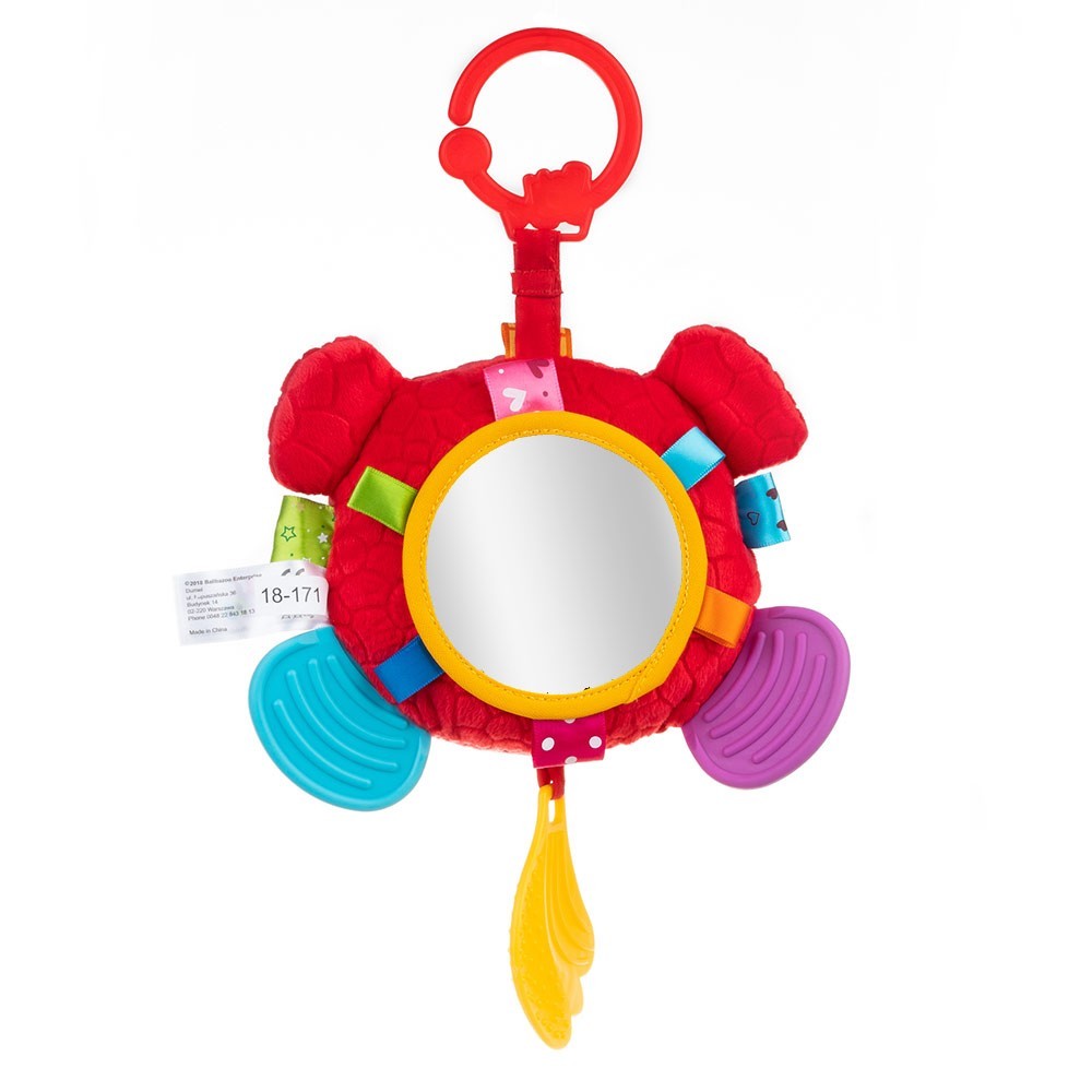 Aga the monkey is a specialist in toddler development. It has rustling ears, fabric tags with different textures and soft teethers with clever insets that gently massage the sore gums of a teething child. A safe mirror, which the soft toy hides behind its back, will be used to recognize the baby and keep it entertained.