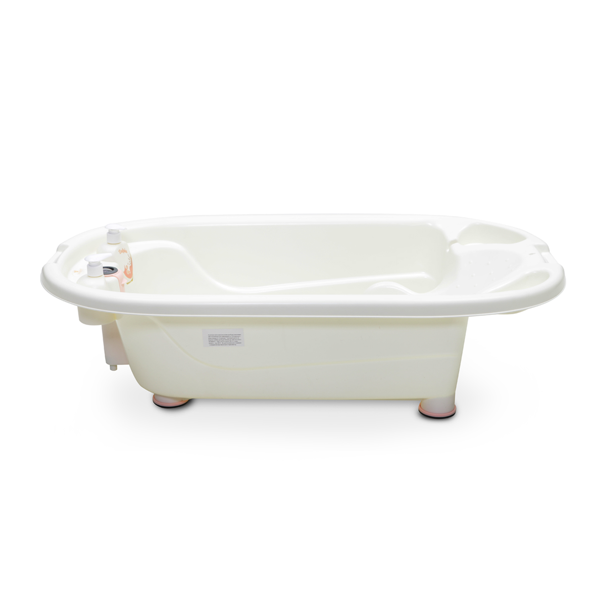 For children up to 24 months. Multifunctional bath with temperature sensor; Bottles for shampoo and shower-gel. Anatomical innter pad built in the tub. Plughole and drain pipe.