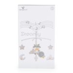 Suitable for children above 0 months. Stimulates the visual perception of your child. The gentle melodies soothe your baby and give a warm sleep environment, improves its visual and auditory perceptions, develop their coordination and identification of different shapes and colors. The bed mobile is with wind-up mechanism, lullabies, soft toys, designed to fit standard cribs.
