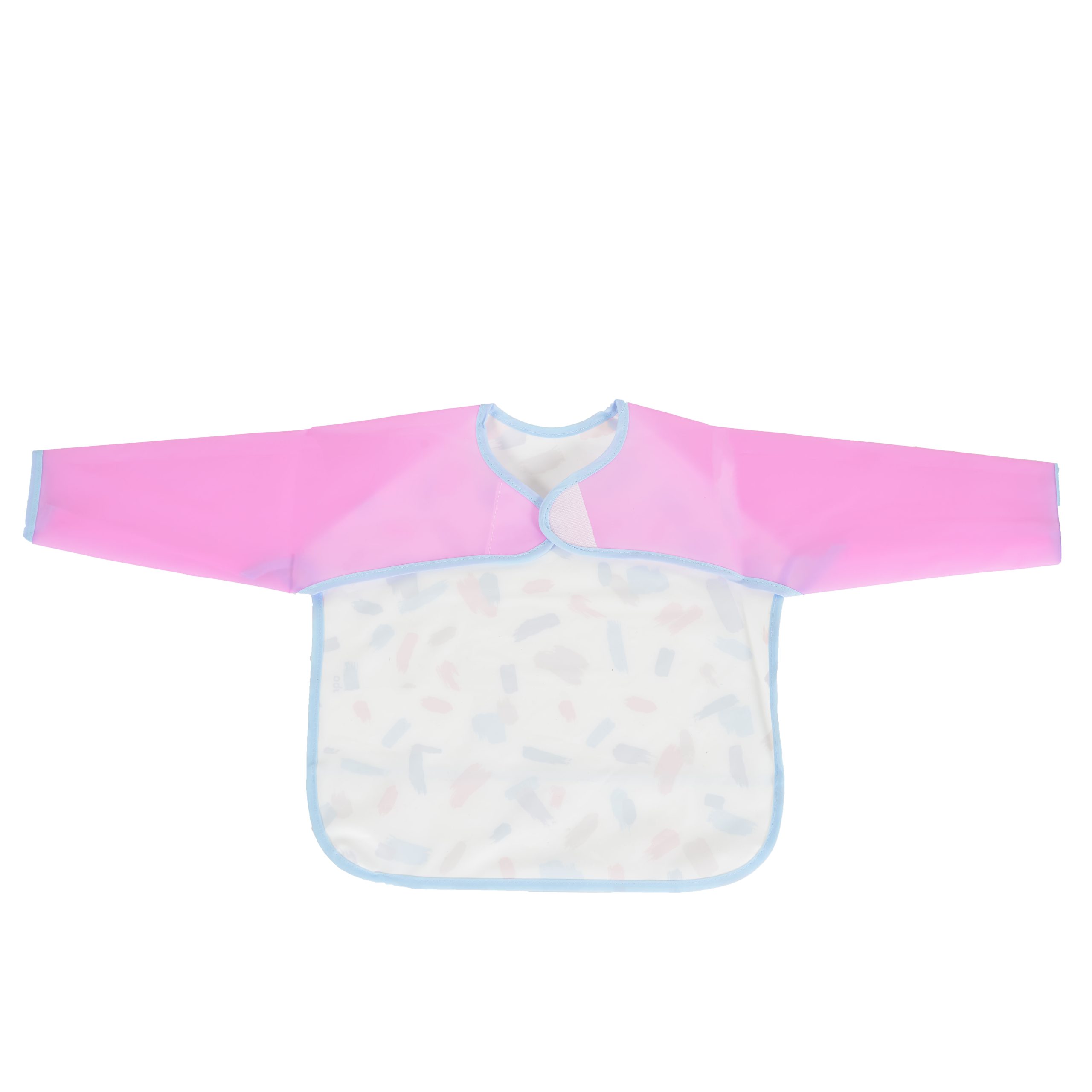 The sleeved bib is suitable for children over 6 months and is made from eco-friendly, health-safe material, free of BPA. The pelican-style design with a food-catching pocket protects clothing and makes cleaning easier. The front is made of 100% polyester, while the inner layer is 85% polyester and 15% cotton for added softness and comfort during wear.