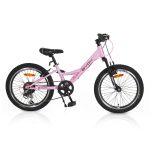 FRAME: Steel hardtail, size 10“ (250mm) FORK: Steel suspension fork RIMS: Double-wall aluminum rims, aluminum hubs, tires 20 x 2.125 GEARS: 7-speed Shimano (SL-RV300, RD-TY21 SS ADPT, MF-TZ500-7CP) CRANKSET: Mode steel 38T x 152mm BRAKES: Logan aluminum V-brakes with alloy levers OTHER COMPONENTS: Stem: Aluminum, H=60mm, O31.8 Headset: Semi-integrated, 1-1/8“ Handlebar: Steel, 580mm, O31.8 Pedals: Feimin PP Kickstand: Adjustable, aluminum, center mount