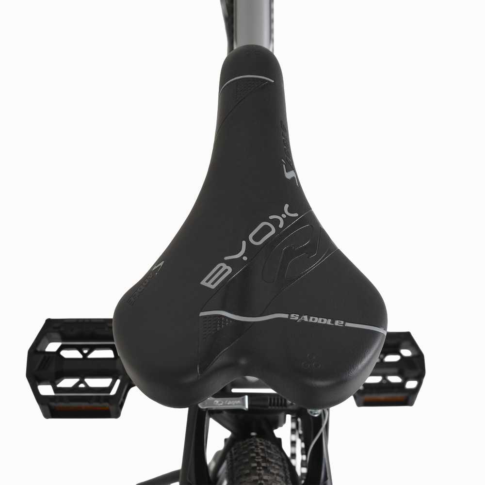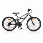 FRAME: Steel full suspension, 13“ (330mm) FORK: Steel suspension fork RIMS & TIRES: Double-wall aluminum rims, aluminum hubs, 24 x 2.125 tires GEARS: 21-speed Shimano (SL-RV300, RD-TY21GS D-ATT, MF-TZ500-7CP) CRANKSET: Mode steel 24/34/42T x 165mm BRAKES: Logan aluminum V-brakes with alloy levers OTHER COMPONENTS: Stem: Aluminum, H=60mm, ?31.8 Headset: Semi-integrated, 1-1/8“ Handlebar: Steel, 600mm, ?31.8 Pedals: Feimin PP Kickstand: Adjustable aluminum, center mount
