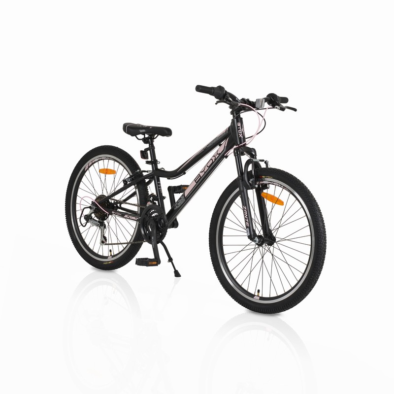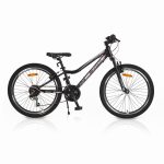 FRAME: Steel hardtail, 12“ (305mm) FORK: Steel suspension fork RIMS & TIRES: Double-wall aluminum rims, aluminum hubs, 24 x 2.125 tires GEARS: 21-speed Shimano (SL-RV300, RD-TY21GS ADPT, MF-TZ500-7CP) CRANKSET: Mode steel 24/34/42T x 165mm BRAKES: Logan aluminum V-brakes with alloy levers OTHER COMPONENTS: Stem: Aluminum, H=60mm, O31.8 Headset: Semi-integrated, 1-1/8“ Handlebar: Steel, 600mm, O31.8 Pedals: Feimin PP Kickstand: Adjustable aluminum, center mount