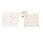 Textured baby blanket, measuring 75×100 cm, made from 100% soft polyester, which is pleasant to the touch and provides a comforting sensation. The set includes a soft cuddly toy with various textures, designed to support the development of the baby`s sensory perception. Packaged in an elegant gift box, perfect for a special occasion. The blanket is easy to care for and can be machine washed at 30°C.