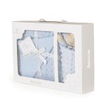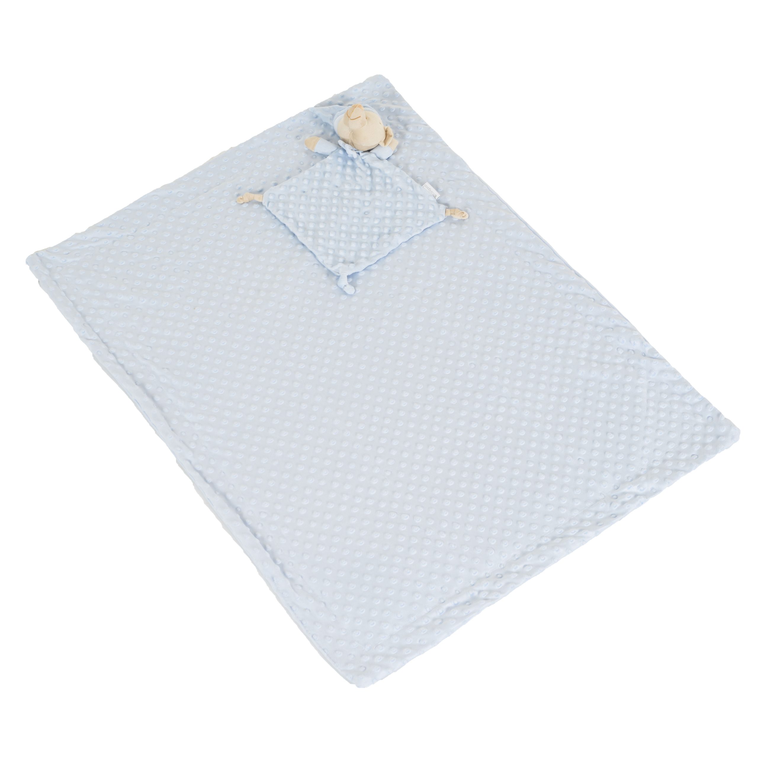 Textured baby blanket, measuring 75×100 cm, made from 100% soft polyester, which is pleasant to the touch and provides a comforting sensation. The set includes a soft cuddly toy with various textures, designed to support the development of the baby`s sensory perception. Packaged in an elegant gift box, perfect for a special occasion. The blanket is easy to care for and can be machine washed at 30°C.