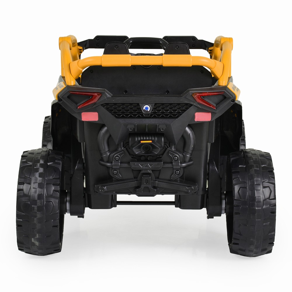 For children above 37 months with maximum weight up to 30 kg; Battery – 2*12V/7Ah; Four motors – 4*30W; EVA wheels; 2.4G RC; Front, rear and upper lights; ON/ OFF switch; Light switch and forward/ backward switch; Music player with USB, MP3, Music functions; 3 speeds – high, medium and low – Controlled only by the RC; When using the UTV manually, it moves with medium speed; Seat Belt; Opening doors; Size of the product: 115 x 72 x 62 cm.