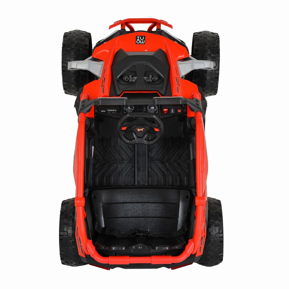 For children above 37 months with maximum weight up to 30 kg; Battery – 2*12V/7Ah; Four motors – 4*30W; EVA wheels; 2.4G RC; Front, rear and upper lights; ON/ OFF switch; Light switch and forward/ backward switch; Music player with USB, MP3, Music functions; 3 speeds – high, medium and low – Controlled only by the RC; When using the UTV manually, it moves with medium speed; Seat Belt; Opening doors; Size of the product: 115 x 72 x 62 cm.