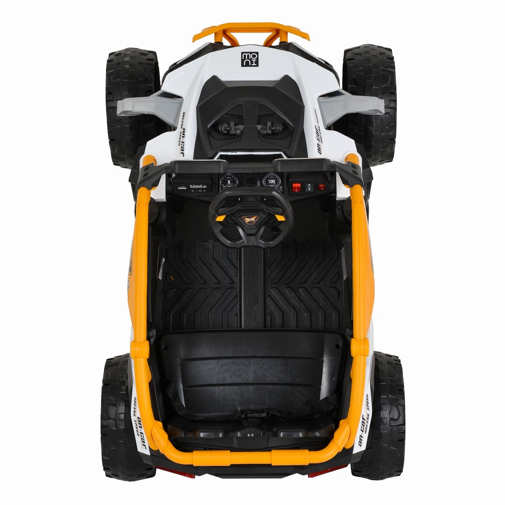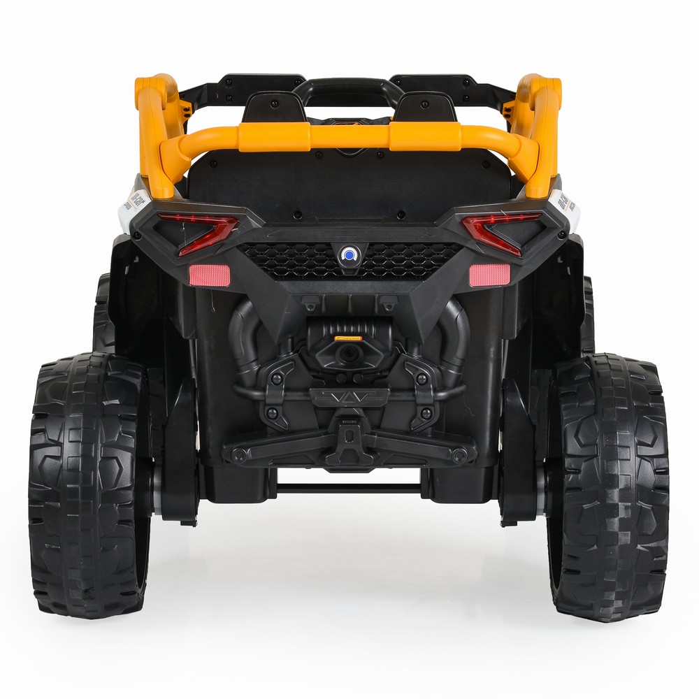 For children above 37 months with maximum weight up to 30 kg; Battery – 2*12V/7Ah; Four motors – 4*30W; EVA wheels; 2.4G RC; Front, rear and upper lights; ON/ OFF switch; Light switch and forward/ backward switch; Music player with USB, MP3, Music functions; 3 speeds – high, medium and low – Controlled only by the RC; When using the UTV manually, it moves with medium speed; Seat Belt; Opening doors; Size of the product: 115 x 72 x 62 cm.