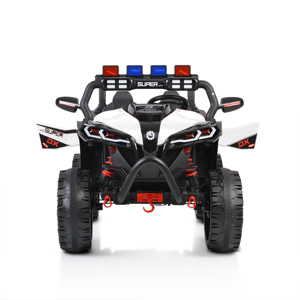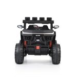 For children above 37 months with maximum weight up to 30 kg; Battery – 1*12V/7Ah; Four motors; Plastic wheels; Swing Function; 2.4G RC; Front, rear and upper lights; ON/ OFF switch; Music player with USB, MP3, Music functions; 2 speeds – high and low – Controlled only by the RC; Seat Belt; Opening doors; Size of the product: 132 x 90 x 88 cm.