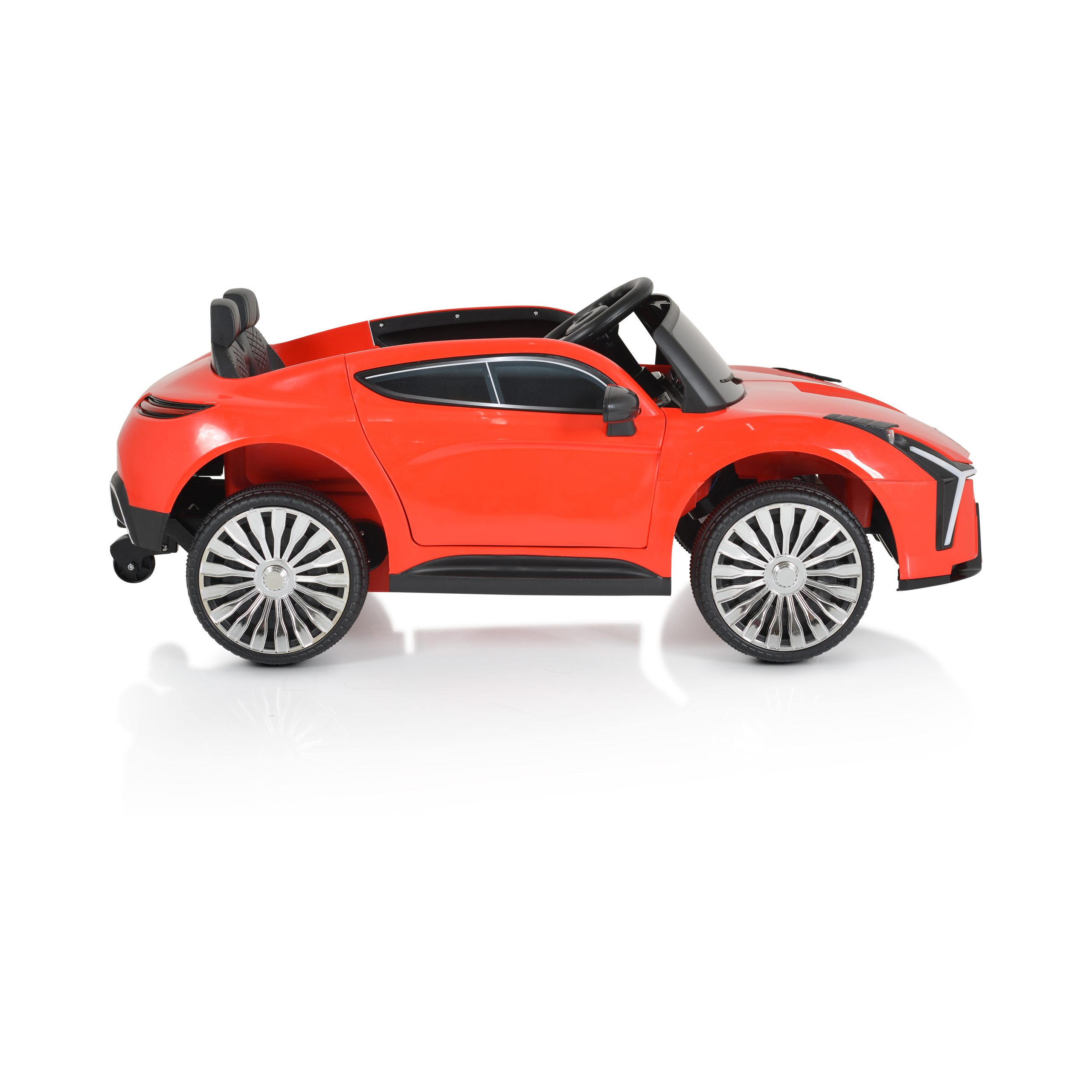 For children above 3 years of age with maximum weight up to 20 kg; Battery – 1*12V/7Ah; Two motors; Plastic wheels; 2.4GHz RC; Front and rear lights; ON/ OFF switch; Music player with USB, MP3, Music functions, Seat Belt; Opening doors; Size of the product: 105 x 65 x 45 cm.