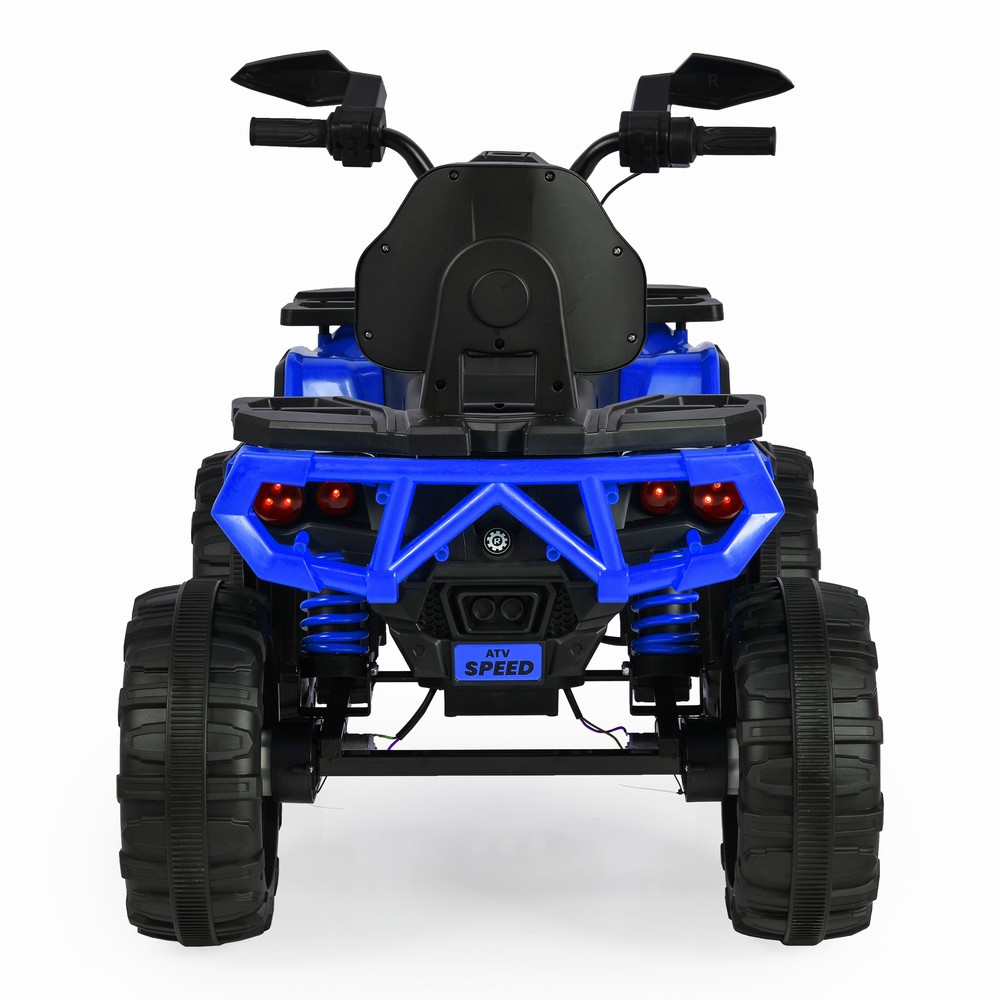 For children above 36 months of age with maximum weight up to 30 kg; Battery – 1x12V/7Ah; Four driving motors – 4 * 25W; Front and rear lights and projector light; Plastic wheels; Switch for Moving forward/ backwards; Handrace – the ATV moves forward or backward rotating the right handlebar; Music functions; MP3/USB.