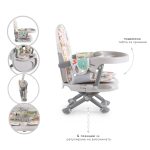 Intended for children who can independently sit up, approximately above 6 months and weighing up to 15 kg (around 3-year-old child). The booster seat has four height position and a three-point safety belt. An additional pad is included for maximum comfort for your little one. The food tray of the seat is one-layer and has a special cup holder. Easy and quick to assemble. The booster seat is easy and compact for transportation.
