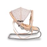 Easy folded baby bouncer with stable metal frame, suitable for children up to 9 kg. Equipped with 3-point harness. Backrest with two positions. Easy for carrying because of the comfortable straps, placed from both sides of the bouncer. Toybar with toys.
