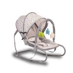 Easy folded baby bouncer with stable metal frame, suitable for children up to 9 kg. Equipped with 3-point harness. Backrest with two positions. Easy for carrying because of the comfortable straps, placed from both sides of the bouncer. Toybar with toys.