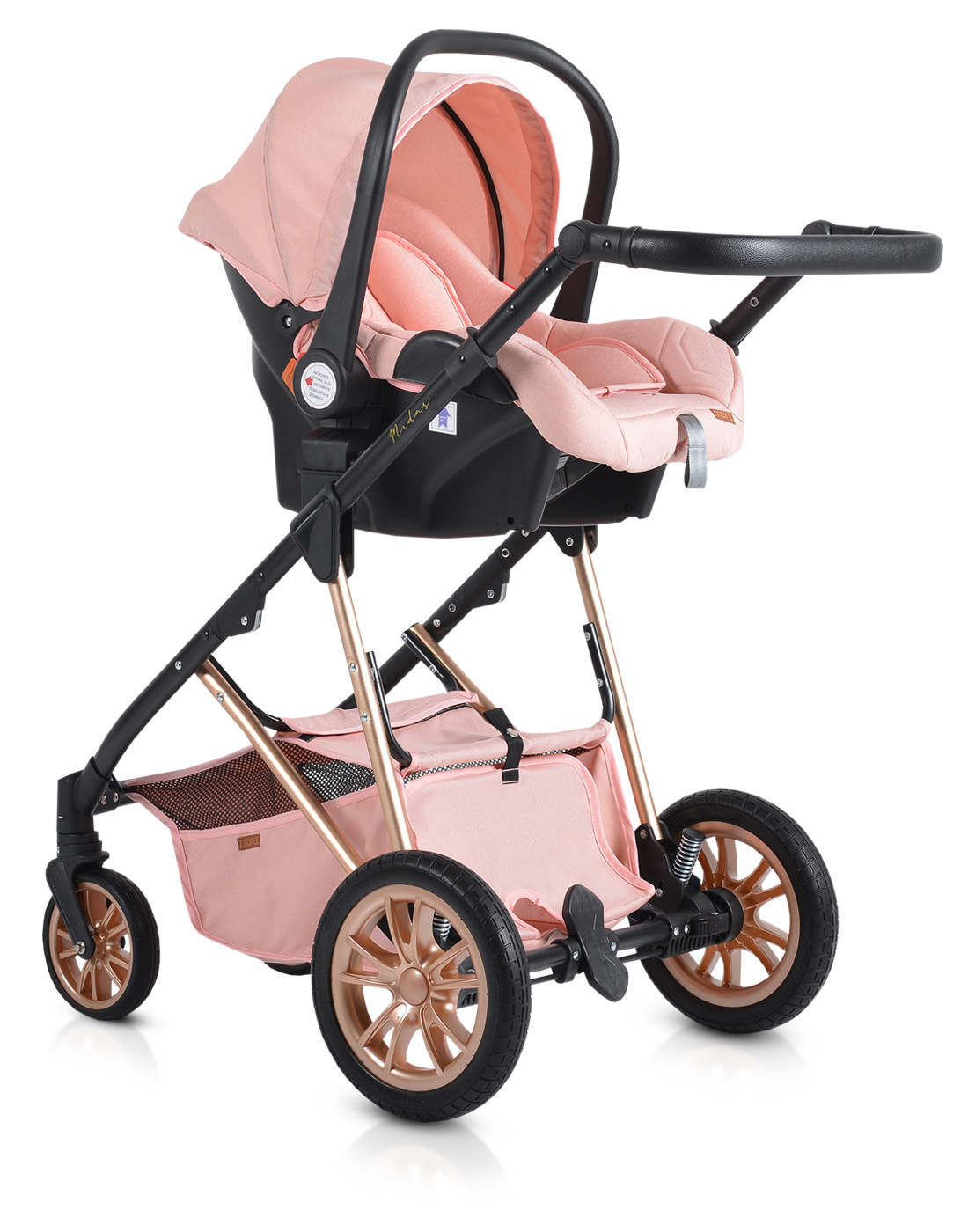 3 Point safety belt, adjustable; 2 positions for adjusting the handle; additional colorful sleeping pad; includes wide sunshade and comfortable footcover; suitable for VEYRON stroller; includes the adaptor