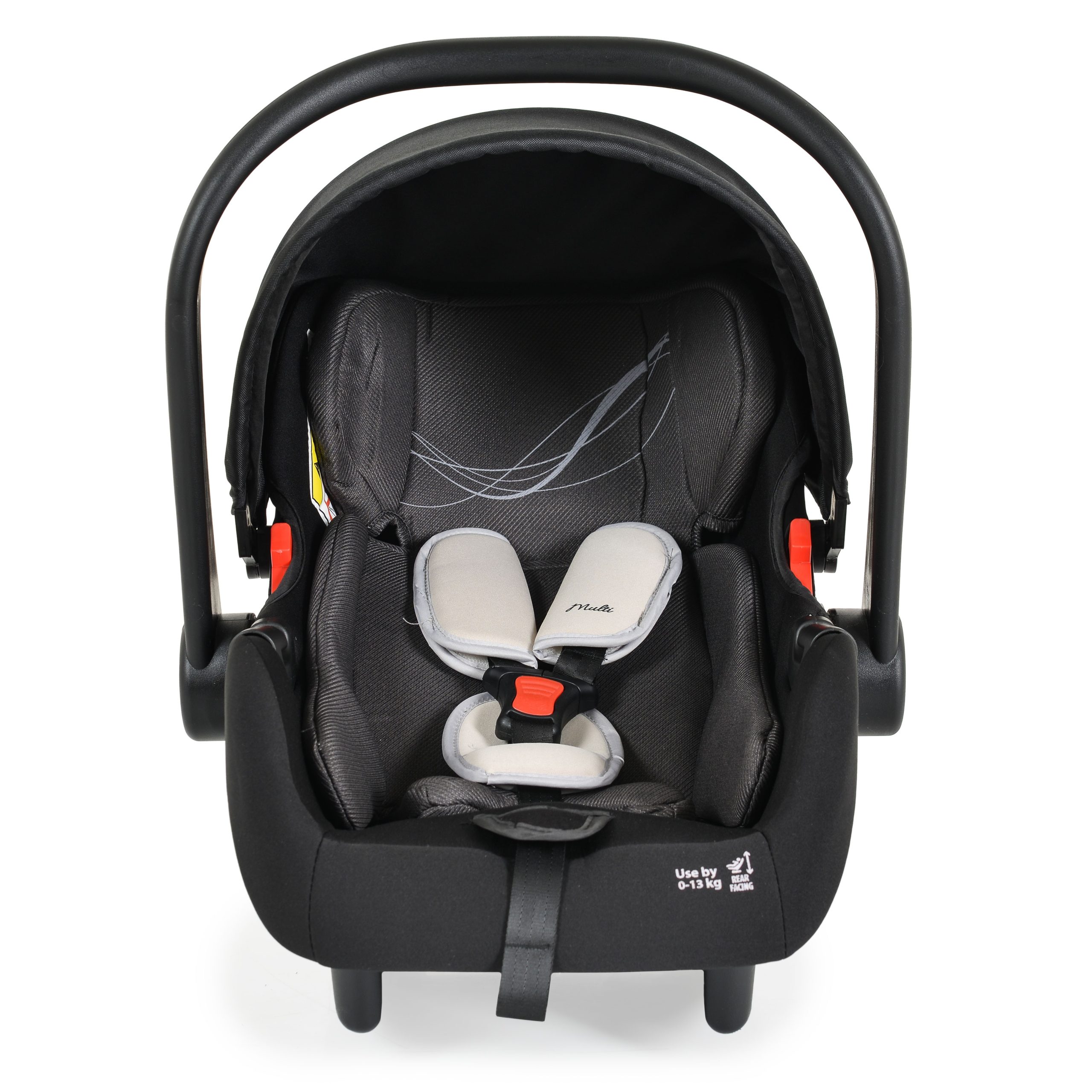 The Multi car seat is suitable for rear-facing use for children from 40 to 86 cm in height. It features an adjustable ergonomic handle and a memory foam headrest with multiple positions for optimal comfort. The seat includes an adjustable canopy and three-position height-adjustable belts. Safety is ensured by a 5-point harness with soft shoulder pads and a cover for the lower buckle. The belts are adjustable, and the seat also has a soft, comfortable pillow for added child comfort. The upholstery is removable and easy to clean. Tested according to the ECE R129/03. For added convenience, the seat is compatible with Kali, Tokyo, Rio, and Rafaello strollers. It is also compatible with the Royal 40-87 cm car seat base, which is recommended for enhanced safety and easy installation.