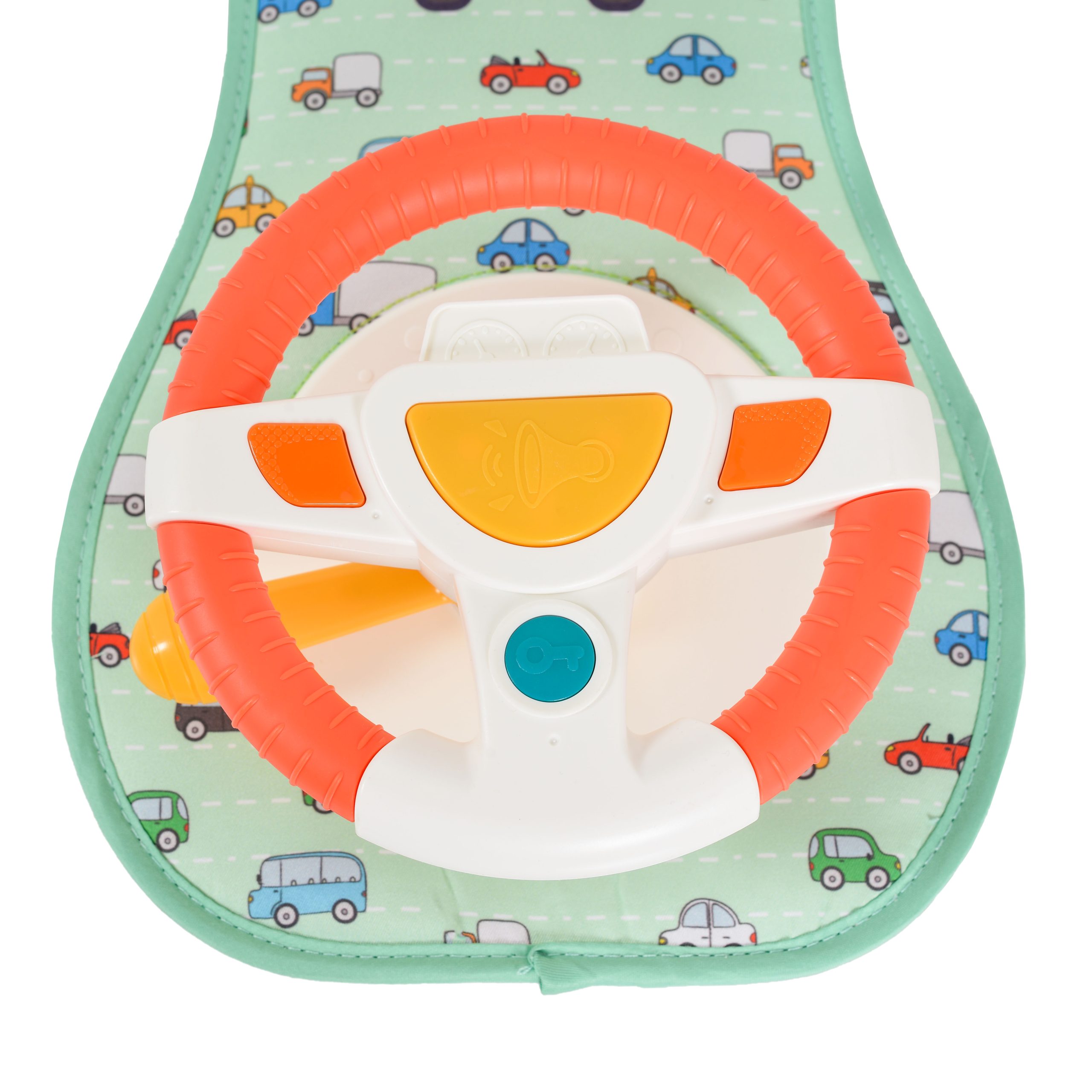 The Baby Pilot interactive car toy is designed for children aged 18 months and above. It attaches easily to the back of the front seat and is intended exclusively for use with forward-facing car seats. The toy engages children with realistic vehicle sounds such as engine start, turn signals, door open/close, and a horn. It also features cheerful melodies, flashing lights, and a large, child-safe mirror. This toy stimulates sensory development and encourages imaginative play during travel, providing entertainment while helping children mimic the driving experience of their parents.