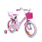 Children bicycle 16“ Steel frame.Alloy wheels . Alloy stem. Front and rear V-brake. Plastic mudguards and chainwheel guard.Plastic rear doll chair and front tool box.Sidewheels.Bell.Suitable for children age 4 to 6 years old, with max weight up to 30 kg