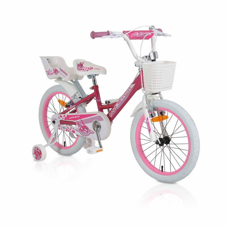 Children bicycle 18“ steel frame.Alloy wheels. Alloy stem. Front and rear V-brake . Plastic mudguards. Sidewheels. Bell. Suitable for children from 5 to 7 years old, with max weight up to 35 kg