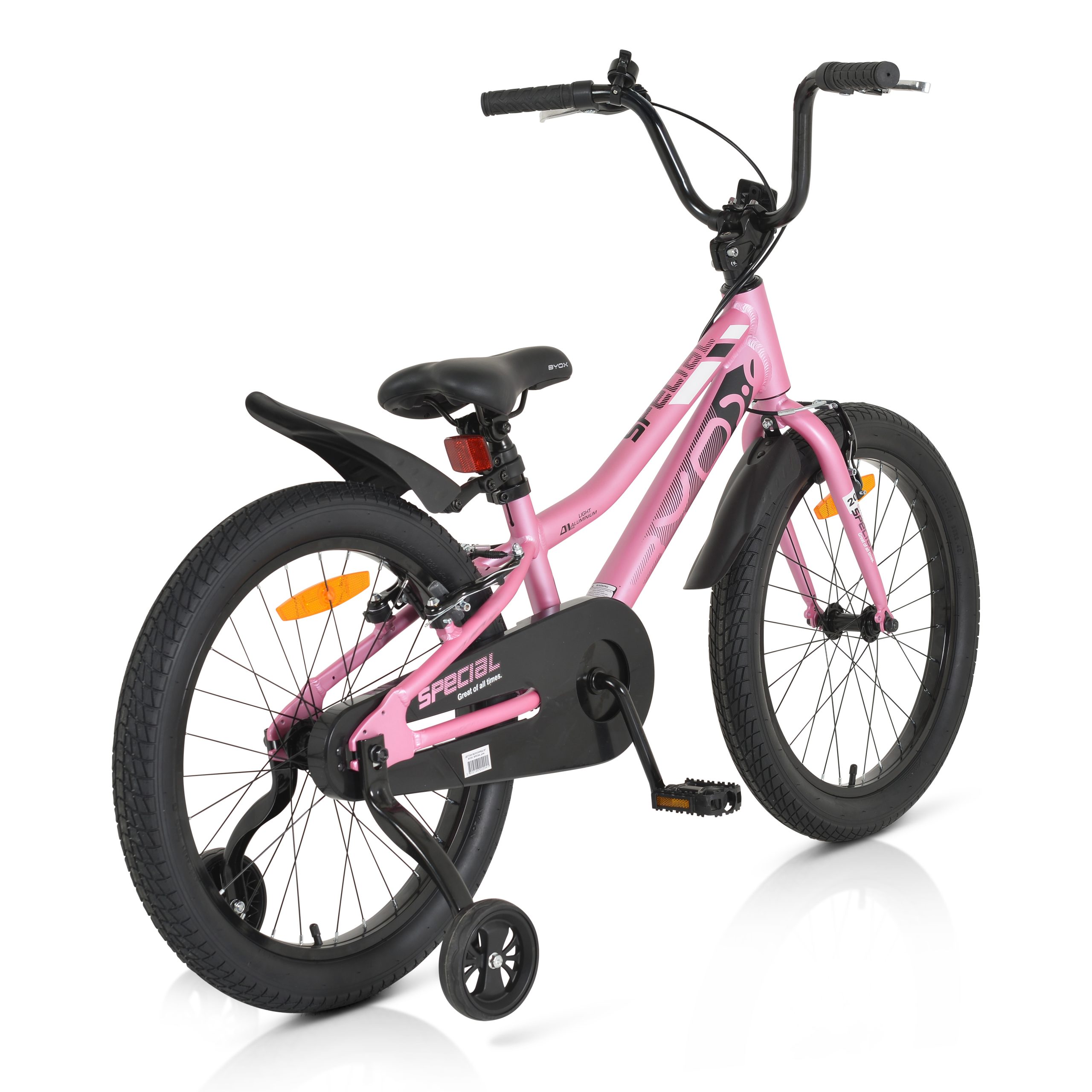 Aluminum frame with reduced height for easier stepping on. Distance from the ground to the lowest position of the soft seat is 58 cm. Aluminum stem for the handlebar. V-brake brakes with aluminum brake levers. Hand-laced aluminum rims with tire width 20*2.40. The children`s bicycle is equipped with sidewheels, a bell and luxury mudguards. Suitable for walking in city parks and paved roads, for children aged 6 to 10 years, with a height of 115 to 135 cm.