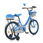Children bicycle with steel frame size 20 x 295 mm. Suitable for children age 6 – 10 years old with max weigh up to 45 kg. Adjustable height of the curved handlebar, seat can be adjusted from 61 cm up to 70 cm distance from the ground. One piece crank, steel rims, front V-brake and rear coaster brake. Includes front and rear basket, mirror, bell, plastic mudguards.