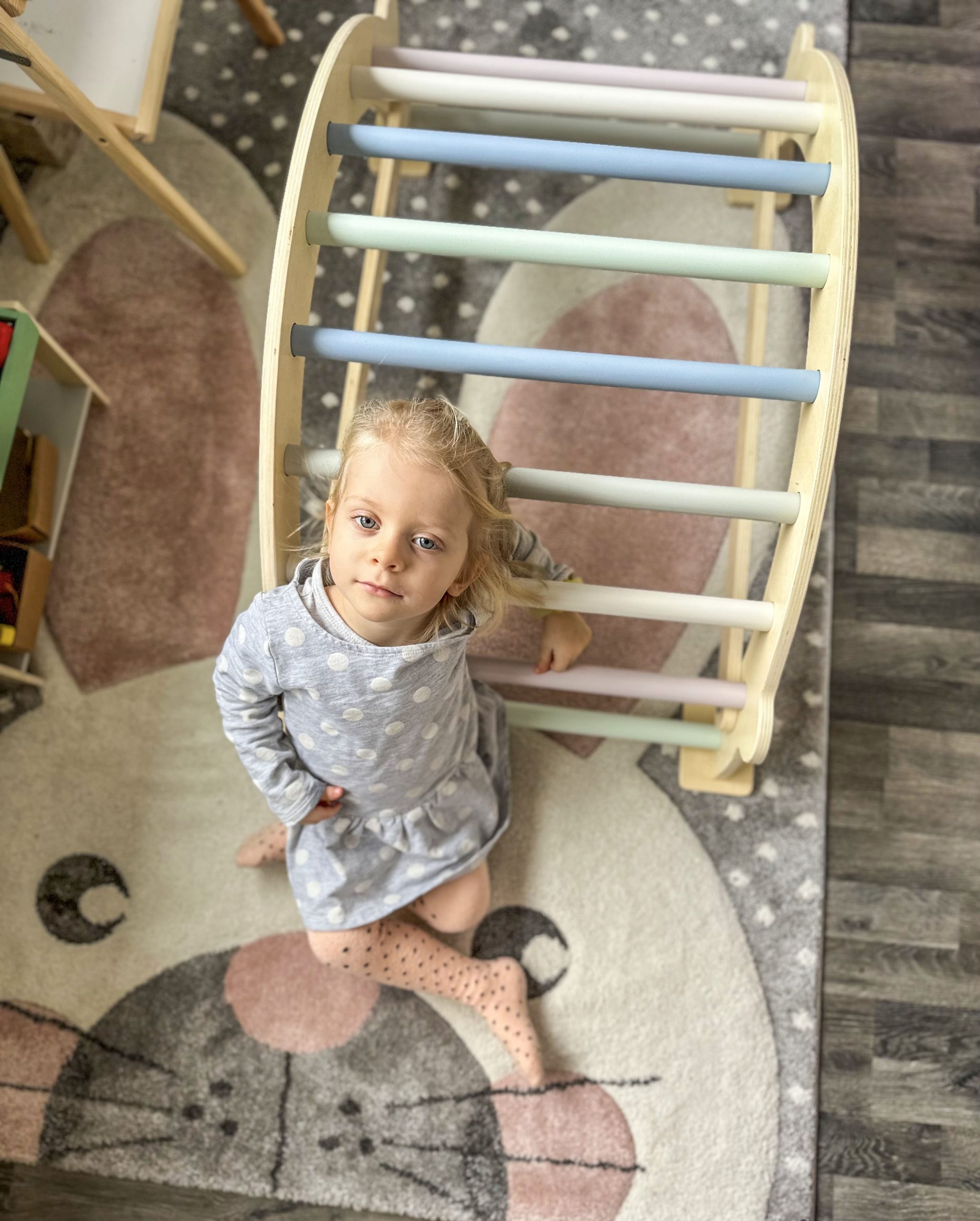 The Pickler Climbing Arch serves as both a climbing and a swing. Maximum permissible weight up to 50 kg. It is made of beech wood and non-toxic paints. Safe and rounded corners.